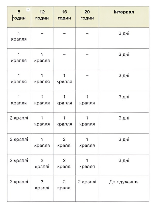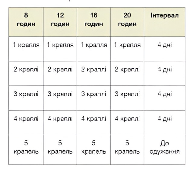 Схема приймання болиголова для вкрай ослаблених хворих і дітей